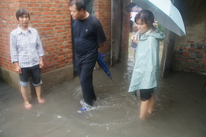 27日天刚亮,龙亢农场副场长、社区管委会主任刘梅一边组织环保所着手疏通道路积水,一边安排各居委会主任调查统计各区受灾情况,并带队冒着滂沱大雨深入各镇区、潘禇两村受灾居民家中进行看望慰问。刘梅在紧急召开的现场办公会上要求,一是社区各居委会要重点关注危旧房家庭,帮助孤寡老人抢排家中积水,避免造成人员伤害;二是环卫所要全力做好排涝工作,架泵帮助居民区排水;三要做好全场受灾情况统计工作并及时上报;四要密切关注天气变化,正确判断雨情水情,及时向广大农场职工和镇区居民通报。