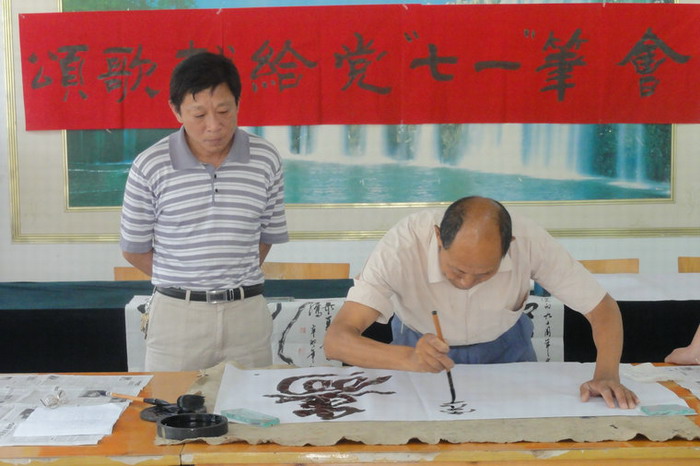 6月20日,农场党委组织开展了颂歌献给党“七一”笔会。农场书法爱好者们紧扣庆祝建党90周年主题挥毫泼墨,创作了“清正在德,廉洁在世”、“廉以立身,俭以养德 ”、“邦民国世,安强盛昌”等书法安徽农垦集团,热情讴歌了党的丰功伟绩。书法会展中,85岁高龄的老党员张作江激动万分,一进门便从口袋里掏出自己的党员证,兴致勃勃地谈起了伟大的党走过的光辉历程,并提笔写下了“一万年太久,只争朝夕”字幅。