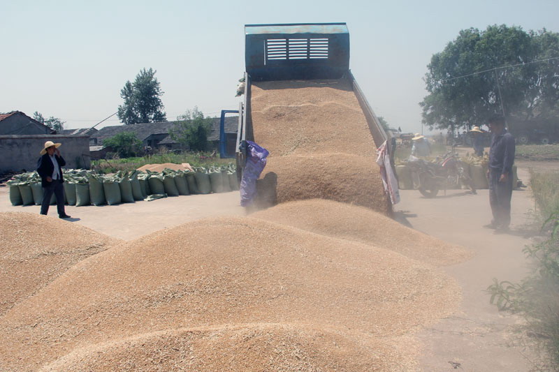 笔者又来到一分场职工许光正的田头,他正组织三台机械在自家地里收割麦子。笔者与他就今年小麦产量、售价和效益拉起了家常,他兴奋地介绍说:我与人合伙承包了300多亩麦田,从目前看亩产800多斤,好的有900多斤,真要感谢场里鼓励调整种植结构,使我家得了实惠目前销售价格每斤在0.95元左右,后期行情还有可能上涨除去直接生产成本和上缴土地承租费,加上粮食补贴款,每亩有三、四百元的利润,秋季就是净赚的了,今年收入还真是不错