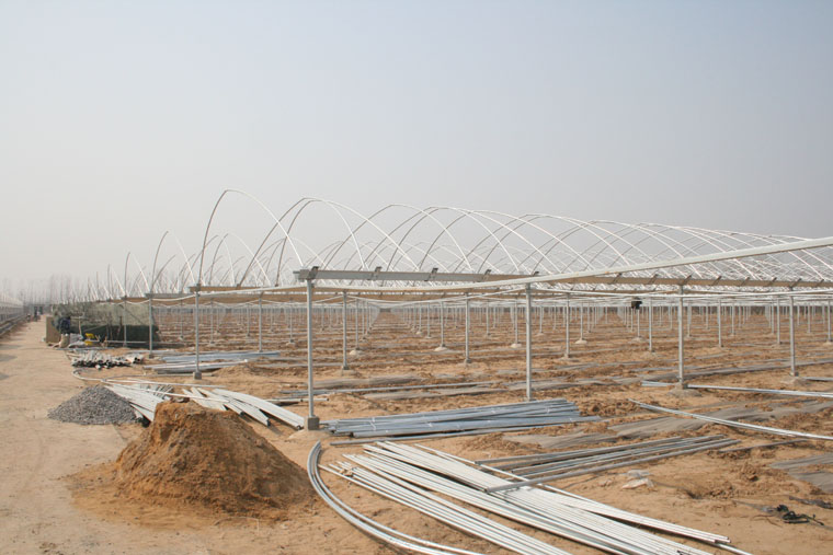 安徽农垦砀山果园场继去年11月一期35亩连栋大棚建成验收后,年底开始建设的二期连栋大棚已完成定苗,目前正加紧搭建棚架,形成了安徽皖北地区规模最大的连栋大棚现代农业示范园区。