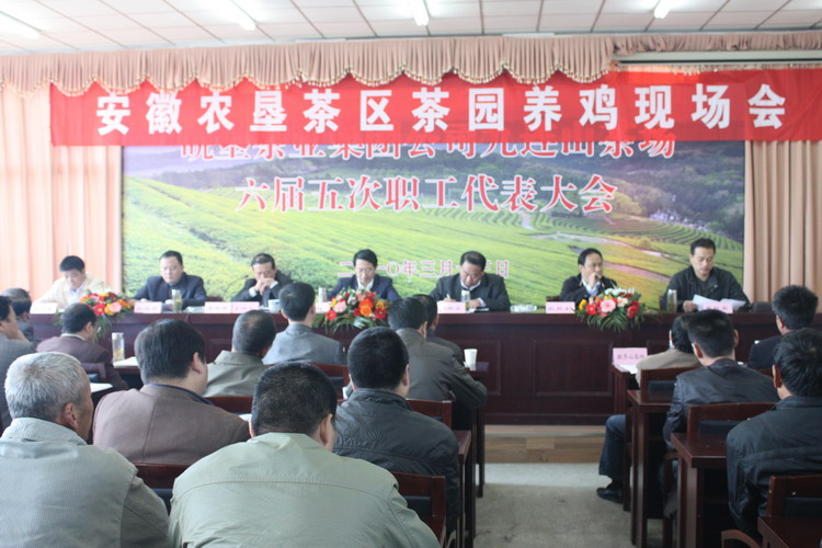 1026,安徽农垦茶园养鸡现场会在九连山茶场召开,省农垦集团副总经理、皖垦茶业集团董事长刘超,安徽农业大学动物科学院教授耿照玉,集团公司农水科技部、皖垦茶业集团、茶区总场及各茶场负责人和养鸡户代表60余人参加了会议。