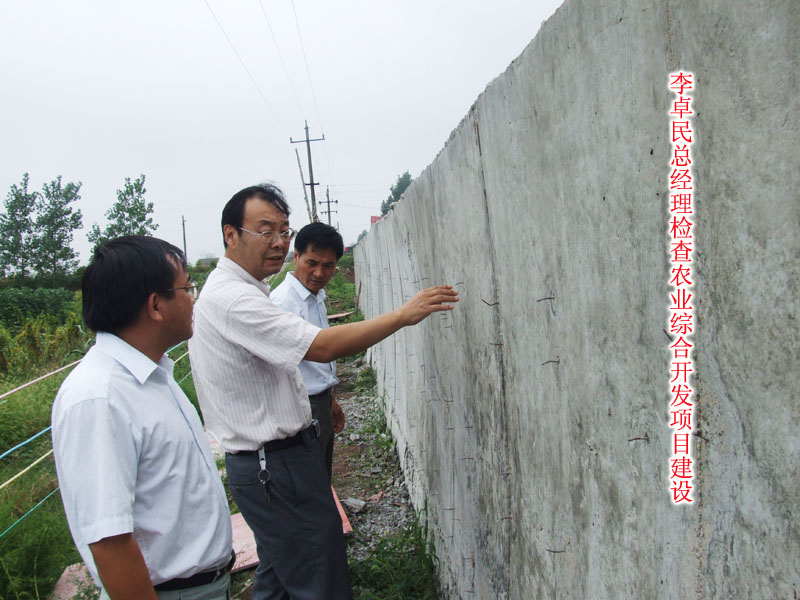 上午,李卓民总经理一行深入到一场、二场田间地头,查看棉花、水稻等农作物长势,他一边走一边询问农场今年的生产形势、作物布局、结构调整等方面的情况,并及时提出指导性意见。在2009年度农业综合开发项目施工现场,李卓民总经理嘱咐大家要把工程质量抓好,发挥工程的最大效益。下午,李卓民总经理到二场及四场二级防汛堤段检查防汛工作,看到职工们在湖堤上查巡堤、进行险段处理,对他们表示亲切问候,同时要求他们加强值班巡逻,及时处理险情,以确保大堤安然度汛。他的一言一行使大家深受鼓舞,表示要坚决守护好大堤。