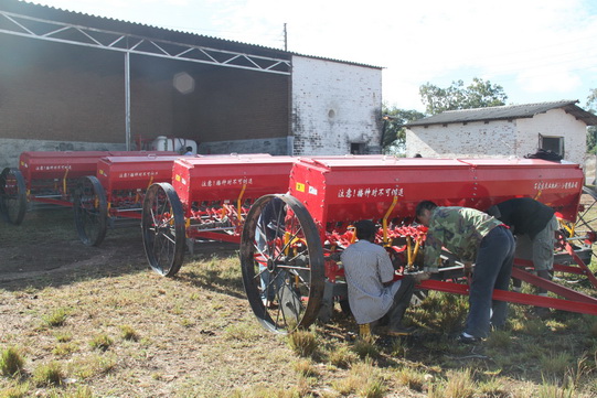 安装调试。刚刚完成卸货任务,皖津公司又抓紧组织对农机进行安装和磨合调试。首批运抵津巴布韦的农机具有拖拉机、拖车、播种机、旋播机、马铃薯播种机及收获机、玉米播种机、重轻耙、旋耕机、深松机、打药机110多台(套),以及喷灌机、电机水泵等其他物资,公司中方和津方员工不辞辛苦,团结协作,全面完成了安装调试的繁重任务。