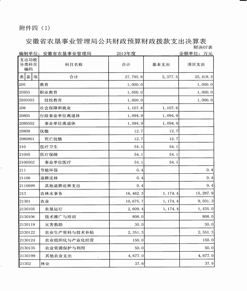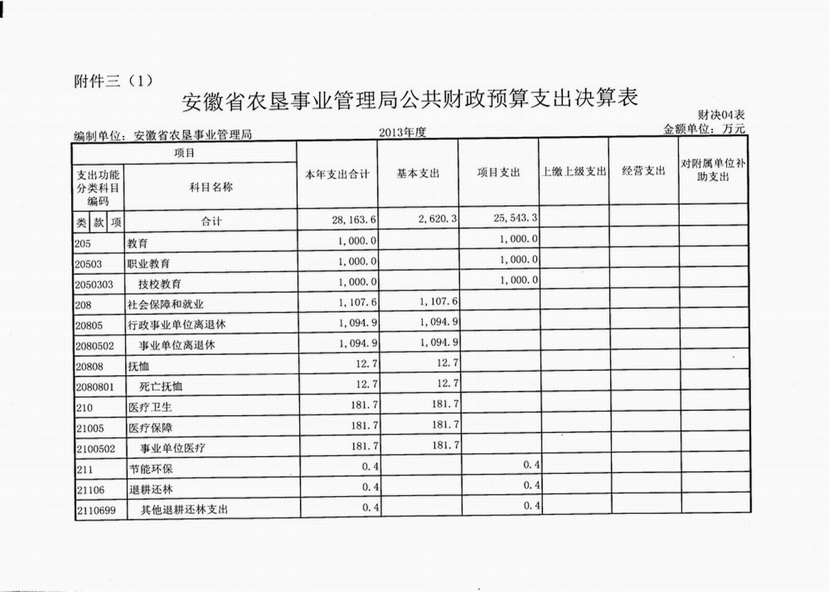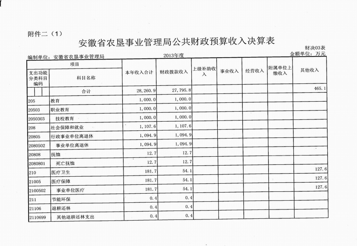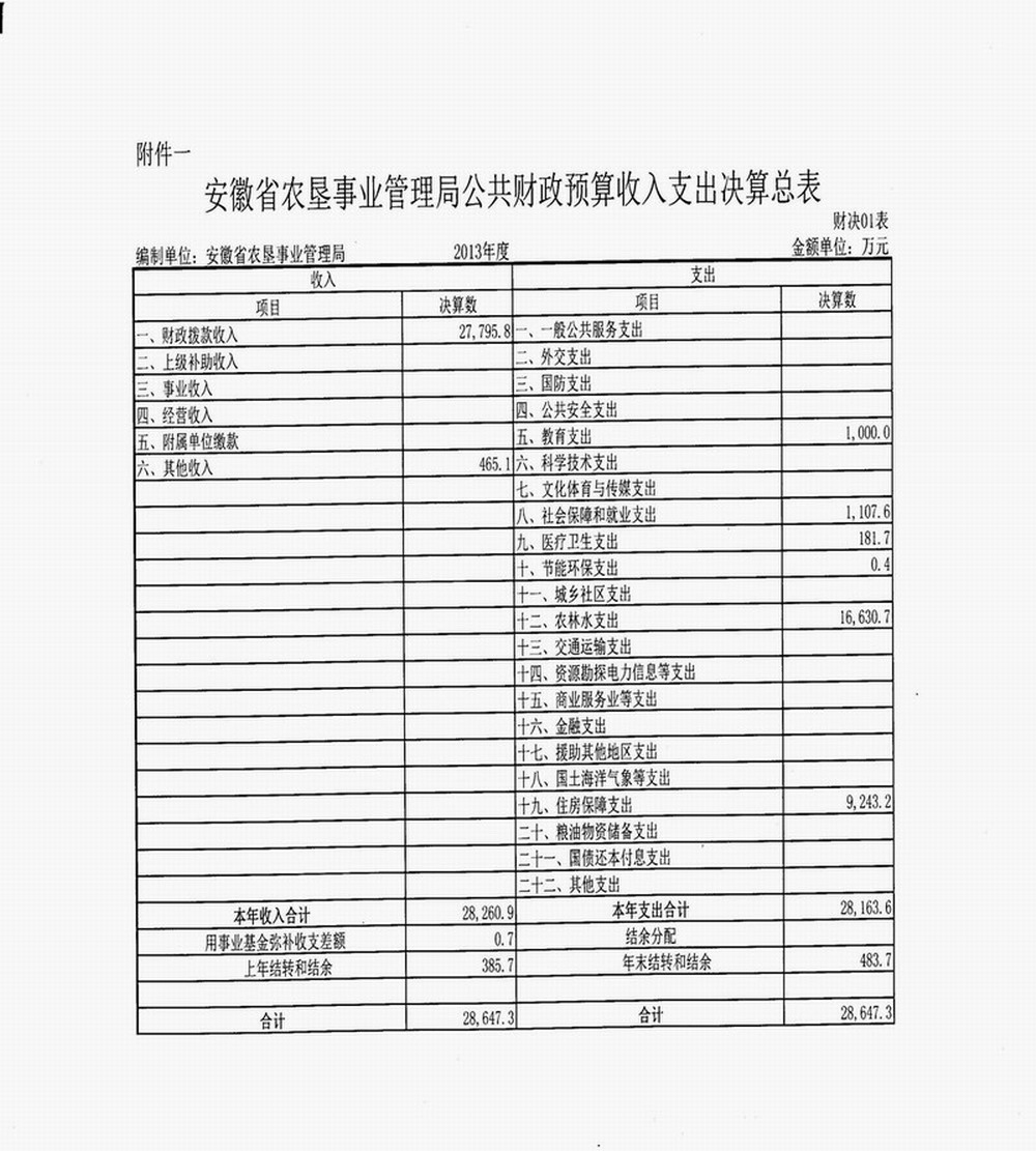 附件:1. 安徽省农垦事业管理局公共财政预算收支决算总表