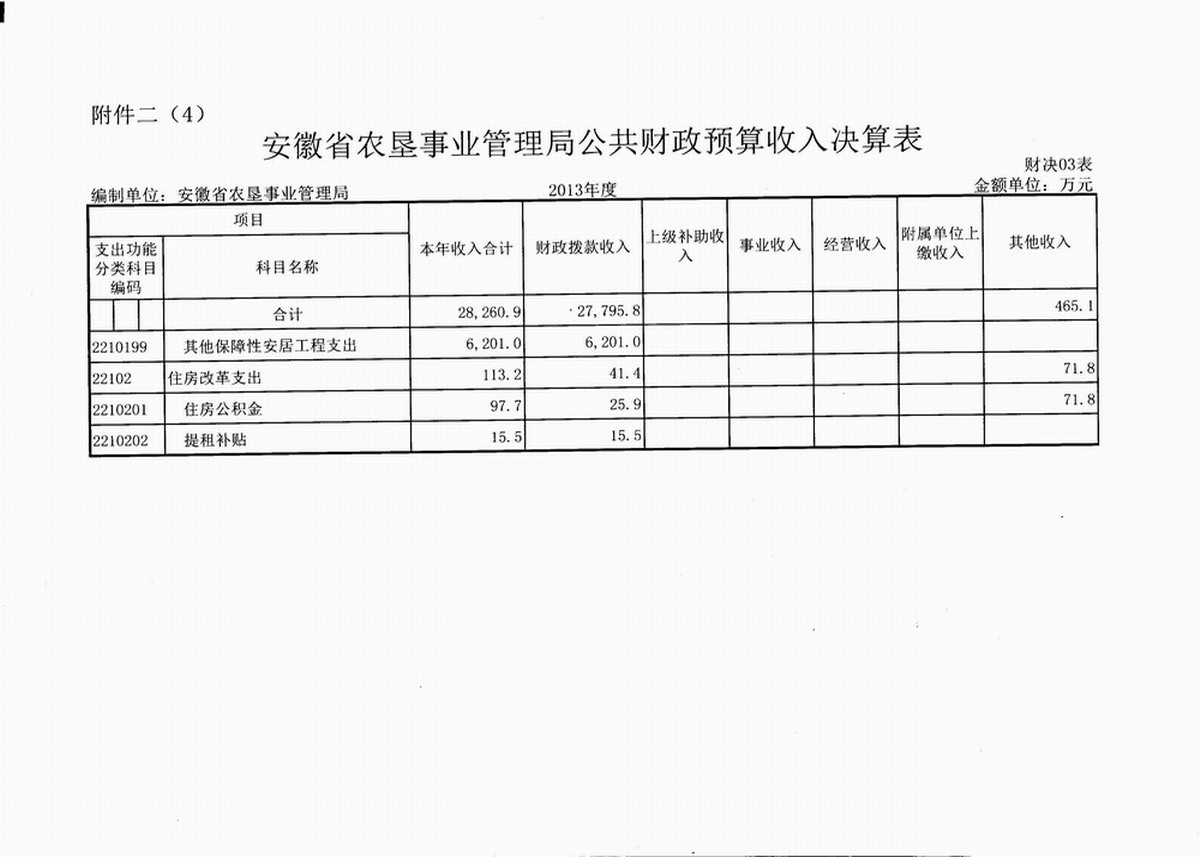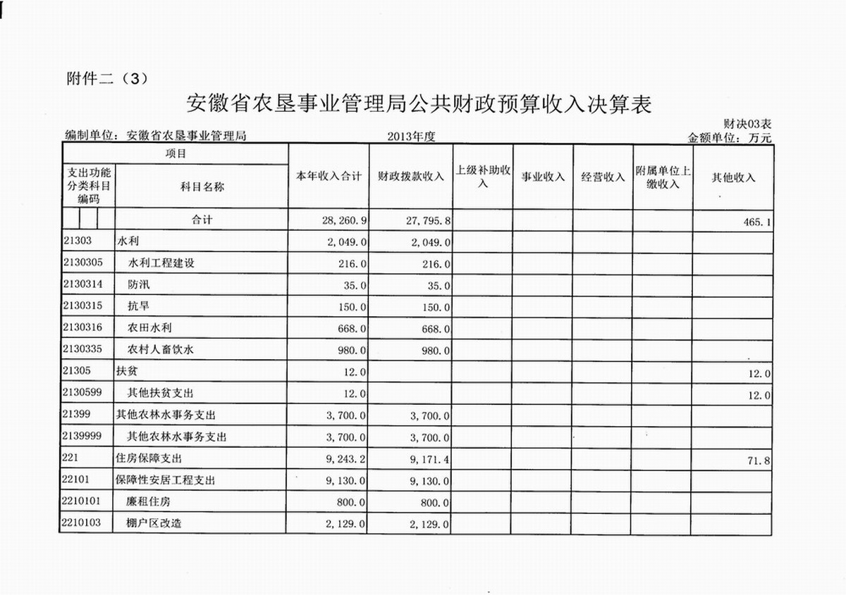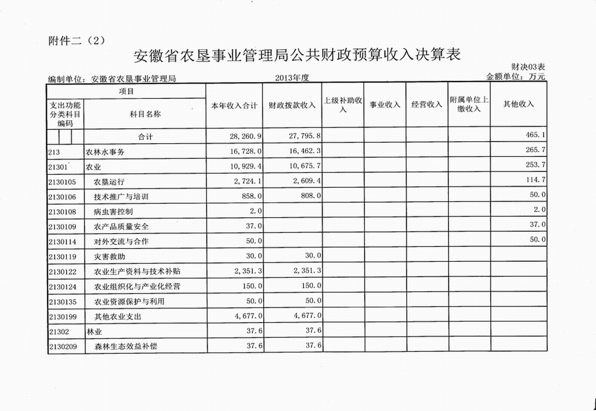 2. 安徽省农垦事业管理局公共财政预算收入决算表