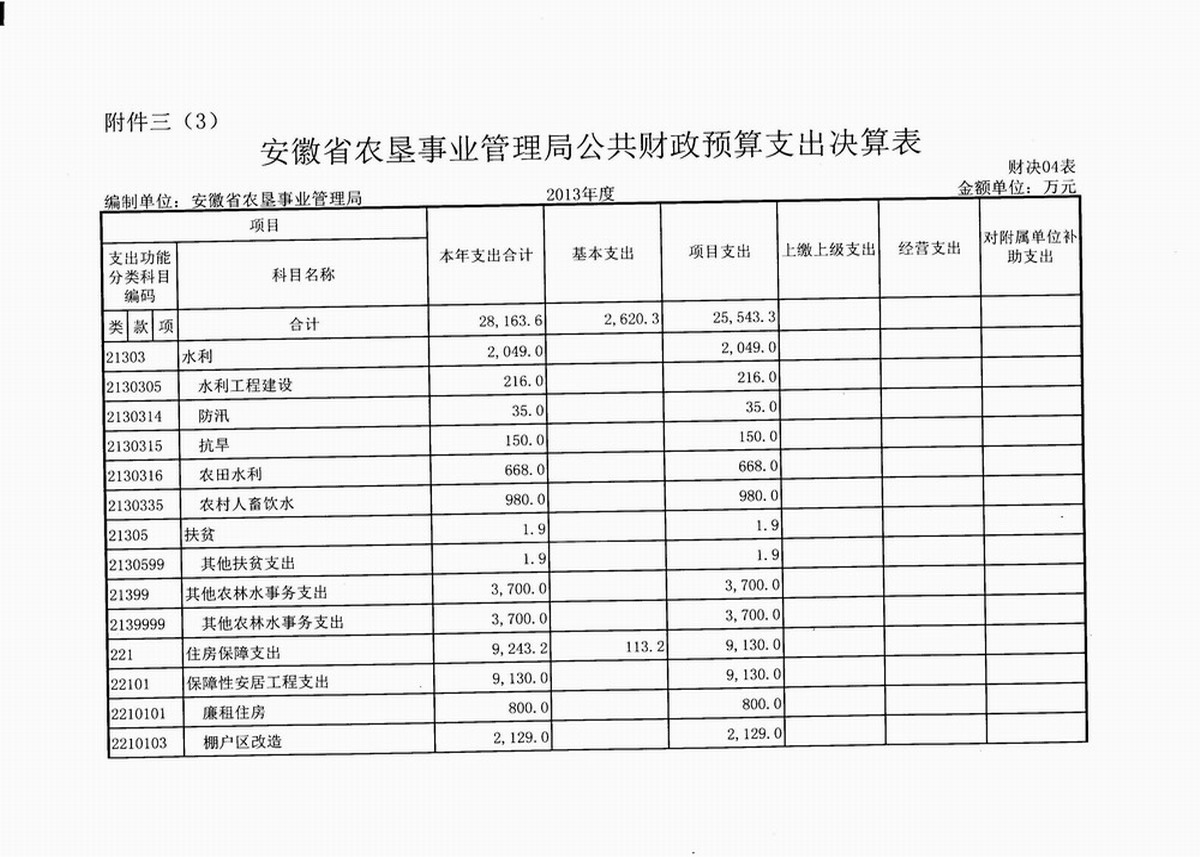 3. 安徽省农垦事业管理局公共财政预算支出决算表