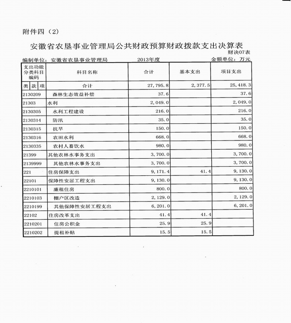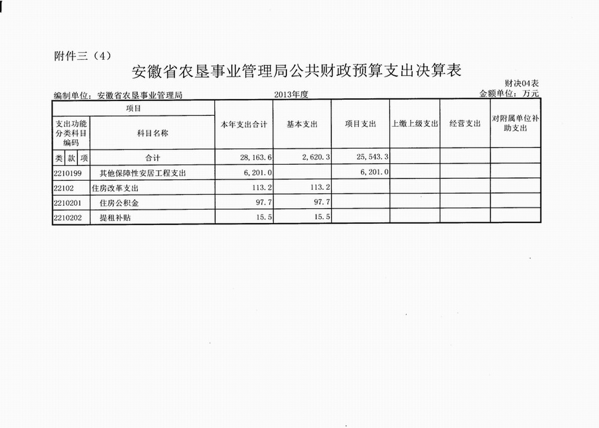 4. 安徽省农垦事业管理局公共财政预算财政拨款支出决算表