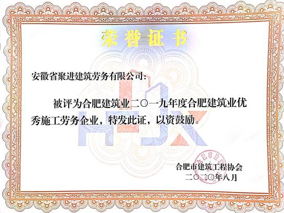 近日,合肥建筑业2019年度评优评先及2019-2020年度合肥市建筑工程“琥珀杯”奖(市优质工程)评审工作已全面完成,农垦建筑公司在此次表彰中喜获“合肥建筑业2019年度优秀施工总承包企业”。 这是公司连续第7年获得“合肥优秀施工总承包企业”称号。同时,在此次评选中,垦建下属的聚进劳务公司也连续第三年“合肥建筑业2019年度优秀施工劳务企业”称号。