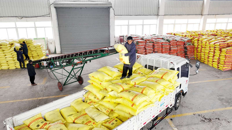 2月28日,龙亢农服公司组织开展农资配送。李峰  摄