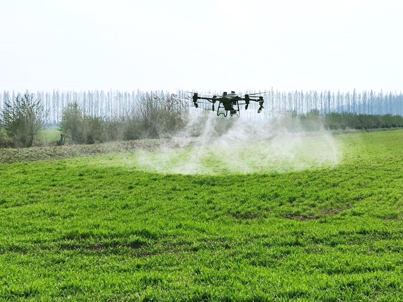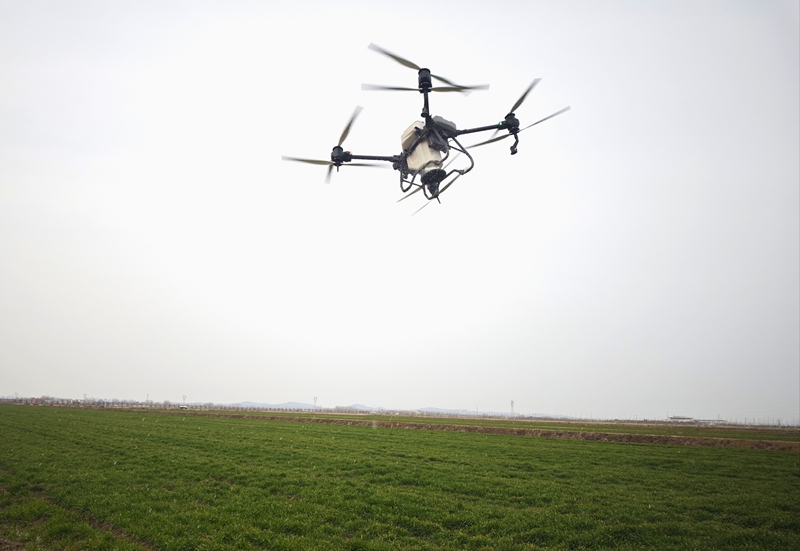 寿西湖农场公司正在使用无人机进行春季麦田化除。刘晨  摄