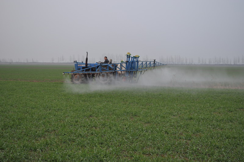 眼下,沿淮冬小麦已进入分蘖期,对肥水需求旺盛,加之近期气温略高,田间杂草呈旺长趋势,落实化除和喷施微肥、促进小麦实现壮苗越冬正当其时。126日,在安徽省最大的小麦原良种繁育基地——安徽农垦潘村湖农场,职工正在田间开展机械化除和微肥喷施作业。(农民日报2013121306版,杨登宏摄)