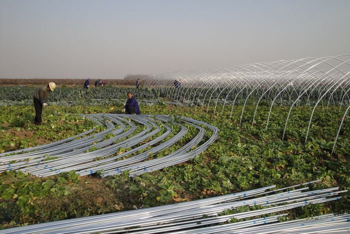 127上午,安徽皖河农场农工正在搭建蔬菜大棚。三益回民分场大棚蔬菜基地建设项目系省扶贫项目,总投资100万元,其中财政投资80万元、农场配套20万元。项目建成后,将新增标准化钢架大棚80余亩,与露天蔬菜相比,菜农每亩可增收3000元左右。据统计,截至12月初,皖河农场蔬菜基地已建成7600余亩,全年总产值6000余万元,蔬菜产业已成为当地农工增收主渠道。