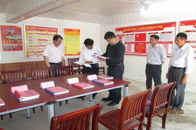 53-4日,省国资委党委基层党组织标准化建设第三验收组组长刘宪辉一行,对农垦集团党组织标准化建设达标情况进行了考核验收。集团党委副书记王良贵及党群工作部、基层部分党组织负责人参加汇报会。