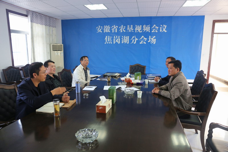近日,阜阳市人社局企业中心主任巫振一行来焦岗湖场交流指导退管工作,场领导林庆年及劳社科人员陪同。