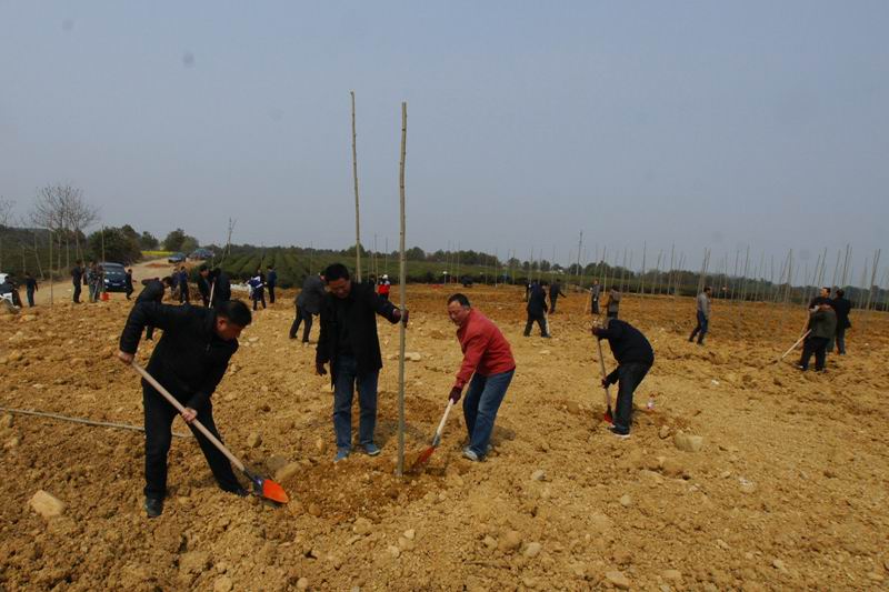 314,皖垦茶业集团党工委书记张国祥率本部及3个专业公司的30多名员工,自备工具,前往九连山茶场与基层干群一道参加义务植树,不到半天就完成了复垦土地1000株法梧的绿化任务。领导干部的率先垂范,推动了所属各茶场春季义务植树活动、绿化家园提升行动的蓬勃开展。