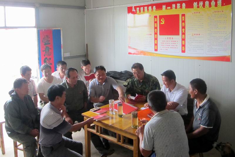 今年党的生日正值防汛抗洪紧张期,为了不影响值班党员的防汛工作,让一线党员们在辛苦之余能过上党的生日,农场党委把两学一做与实际工作相结合,把微党课搬到了防汛指挥所,实现学习教育与防汛抗洪两不误、两促进。71,四分场党委书记姚渊来到五队湖堤防汛指挥所,给党员们上了一堂简短而生动的党课,带领驻堤党员们一起重温了入党誓词,在党旗下庄严宣誓,希望他们时刻牢记党的宗旨,敢于担当党员职责,在抗洪战斗中践行两学一做