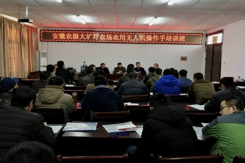 1226,由省农服公司、大圹圩农场和安徽极速飞翔航空植保公司联合举办的农用无人机操作手培训班顺利开班。三单位领导胡兴兵、汪登松、徐应春作开班动员。