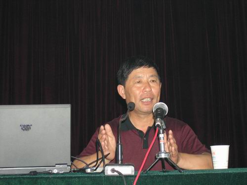 为切实帮助广大家庭农场职工开展好灾后生产自救工作,潘村湖农场于7月7日上午举办了一期农作物栽培技术培训班。安徽省著名玉米专家、高级农艺师、宿州市农科所杂粮室主任陈现平应邀来我场授课。陈主任结合当前农时及农场实际情况,重点就玉米栽培技术作了深入浅出、形象生动的讲授。来自各分场的管理人员、生产组长和部分职工代表近200人参加了培训活动。(图为陈现平主任在讲课)