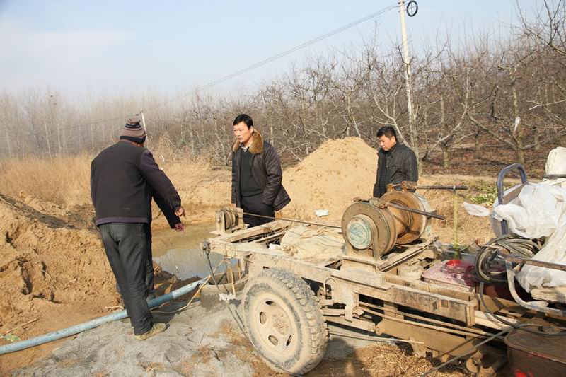 打井又挖沟,忙着冬修水利。当前职工们正忙着打井、挖沟和林眼排水沟清淤,确保果园旱能灌、涝能排,全场到年底有望新打机井60多眼,机械开挖排水沟5000多米,近3年间共打井200多眼,已基本能解决抗旱用水的问题,也为果树花期喷水防寒打牢了基础。