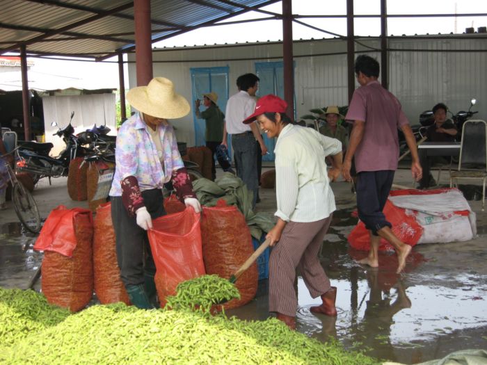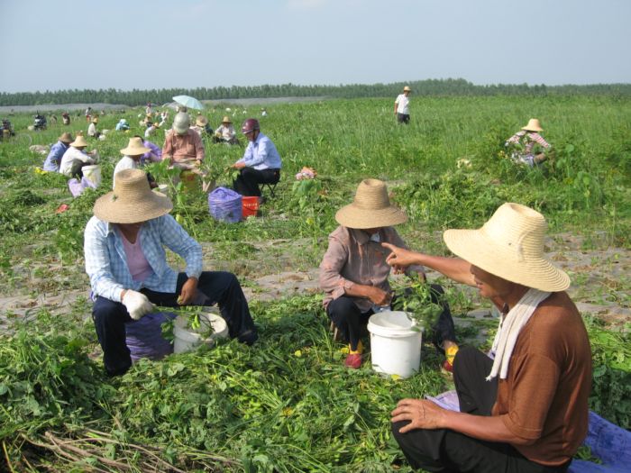 5月下旬以来,皖河农场新光和红旗两个分场每天有600多名农工扎堆在菜地里抢摘毛豆。继4月份200亩大棚毛豆上市后,农场近期900亩露天毛豆再次大批量采摘,山东老板李凯以技术、市场等为要素示范带动农场10多个种植大户组成毛豆“兵团”,在今年油菜和小麦夏收田野独树一帜。据了解,这批毛豆总产约600吨、单产650公斤,亩效益1300元。主要供应安庆市场,其次运往上海、浙江杭州和江苏南通等地。6月20日前后毛豆进入安庆市场后,每市斤1.2元左右,比去年同期低2到3毛钱,平抑了市场价格,由于当地政府对菜农进行补贴,他们每亩仍增收800多元。毛豆“采摘热”带来了本地农工“务工热”,他们每摘一斤毛豆可获0.3元报酬,这些季节工一个月下来能挣2000多元,不仅增加了收入,而且学到了毛豆种植技术。(王洪0