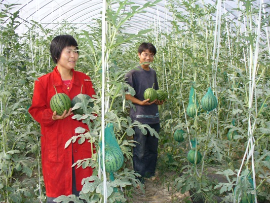 安徽省农垦龙亢农场利用标准化薄膜温室引种的天使1号、4号系列西瓜经过75天的生长期,5月25日开园采摘,上市后每亩产出1万多元,效益4000多元,同时采摘的还有黄籽金玉香瓜、 圣女系列樱桃番茄等。引种、 实验特色蔬菜与瓜果品种是该场调整种植结构、实施农业标准化生产的一项重要举措,为此农场投入20多万元,新建薄膜温室10亩,不仅一年可以创造近30万元的效益,而且带动了农场特色蔬菜、瓜果的生产,对周边农村也起到良好的示范带动作用。