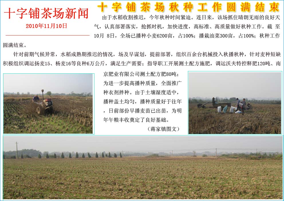 十字铺茶场秋种工作圆满结束