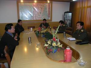 说明:由明光市委常委、市人武部部长李正国(右 一)带队的检查组于元月18日在潘村湖农场检查指 导基层武装工作。场有关部门的负责同志就党管武 装、民兵规范化建设、率兵参建、征兵等项工作作 了汇报。检查组对农场近年来武装工作给予了充分 肯定,并就进一步加强国企武装工作与场主管同志 进行了交流和探讨。