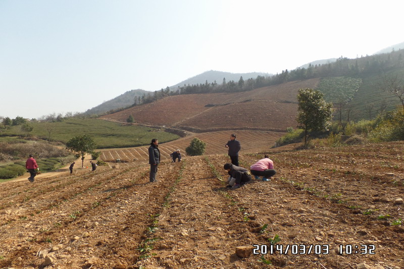 安徽敬亭山茶场实施2013年现代农业项目栽植良种茶园200亩,同时承担安徽农业大学茶叶种质资源库29个品种的栽培任务,去年底前已完成茶园开垦、吊槽、施肥、订苗等工作,但由于去年冬旱无雨、今年初又遇连阴雨天气,致使茶苗栽植延迟。