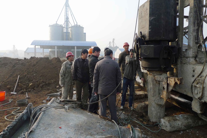 126上午,安徽寿西湖农场粮食生产加工扩建项目开工建设,工程指挥部技术人员现场检测了基桩的直径、深度等指标数据,顺利打下了烘干机房基础第一桩。