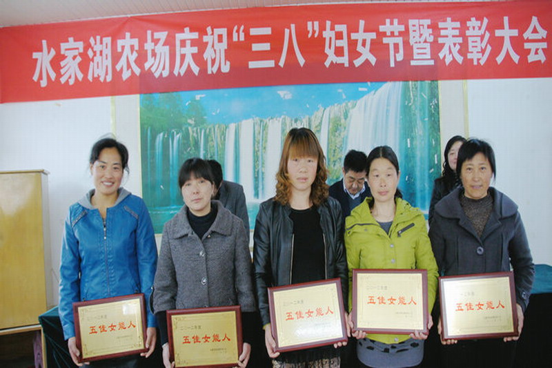 水家湖农场召开庆三八表彰大会,表彰了10诚信家庭十佳女职工五佳女能人10好媳妇4名受奖代表作了交流发言,表示要以积极的心态、饱满的热情投身农场经济建设主战场,在农业发展、体制改革、项目工作、民生工程、场镇建设、环境改善等各项工作实践中找准位置、创造业绩、展示风采。皖河农场邀请安庆市大观区司法局、妇联前来开展《妇女权益保护法》、《家庭教育报》、《婚前健康检查》等咨询活动,加强法制宣传教育,强化了妇女维权意识,促进了农场和谐稳定;同时,该场还举办女职工联欢会、评选表彰了十佳好媳妇,弘扬了中华民族传统美德,营造了尊老、敬老、爱老正能量。正阳关农场举行女职工座谈会,与会女工畅谈农场日新月异的变化和逐渐提高的生活水平,表示要继续发挥半边天作用,为农场科学和谐发展贡献力量。