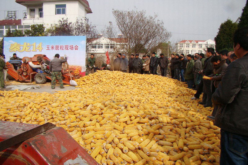 1123,安徽夹沟农场与月生种业公司联合举行优质玉米秦龙14”脱粒现场会。宿州市桥区农业专家、各地种子经销商及农场职工约400人到会观摩。