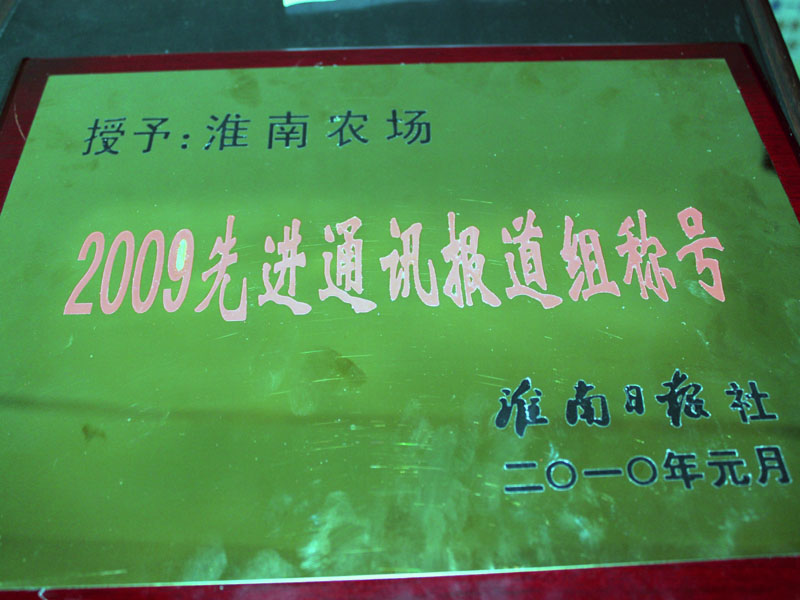 近日,淮南日报社决定,授予淮南农场宣传报道组2009年度“先进通讯报道组”称号,授予场通讯报道组组长石小星同志2009年度“优秀新闻报道通讯员”称号。这是淮南农场宣传工作连续三年受到淮南日报社表彰。