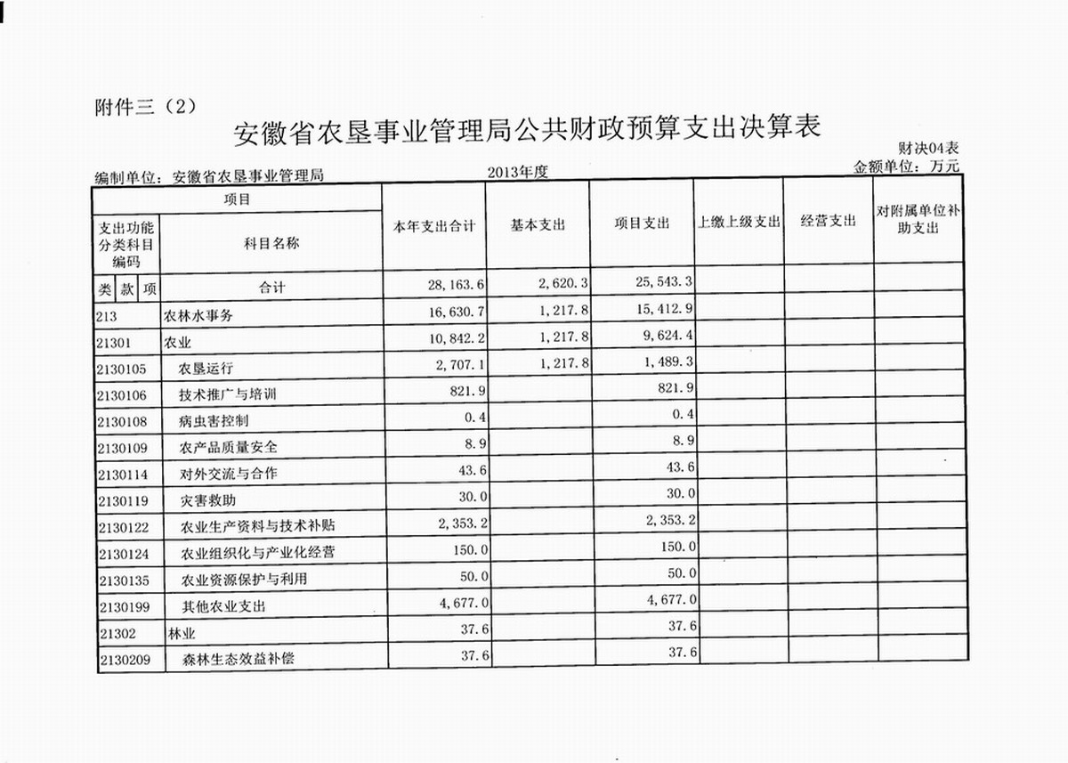 附件:1. 安徽省农垦事业管理局公共财政预算收支决算总表