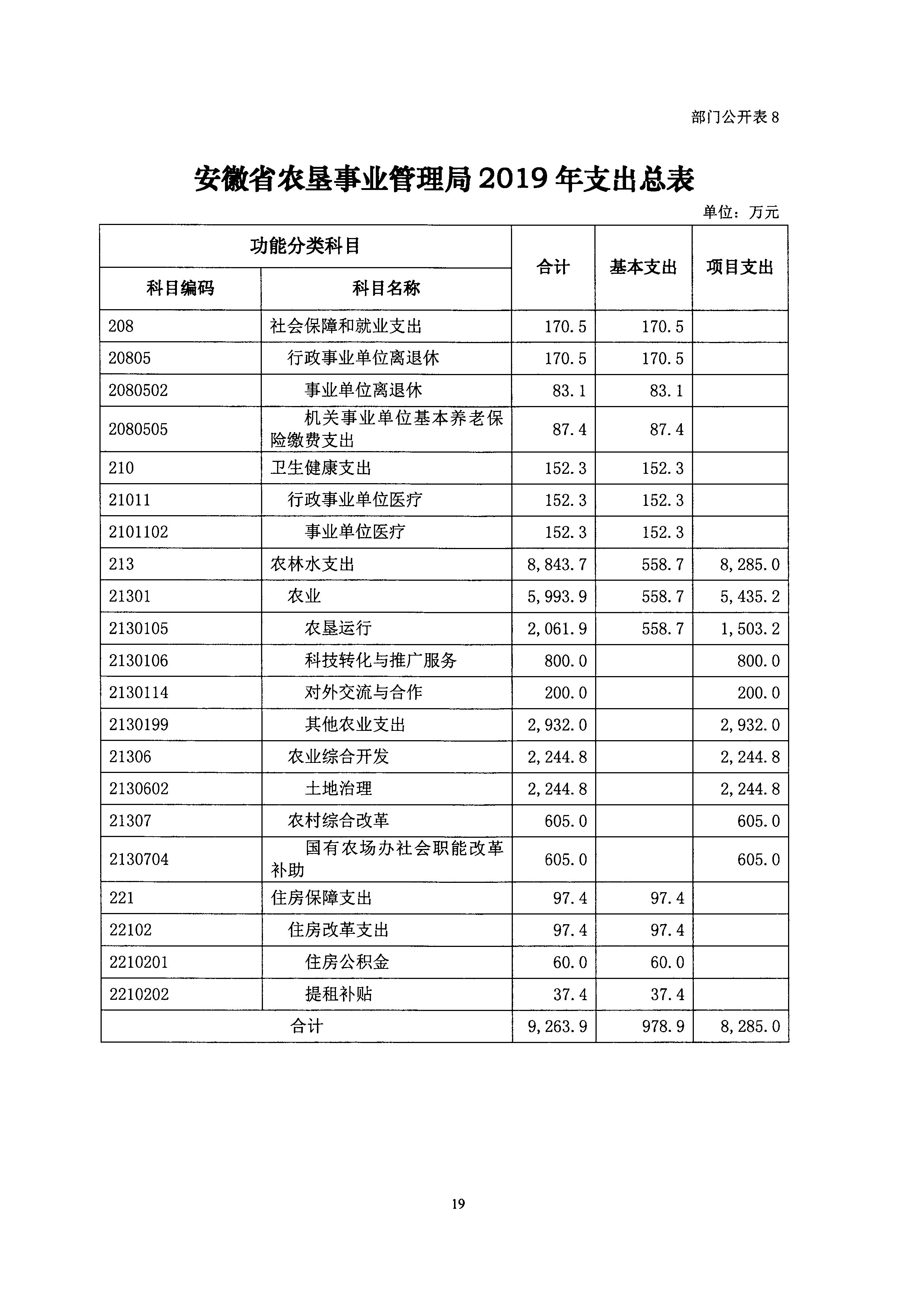 安徽省农垦事业管理局2019年部门预算