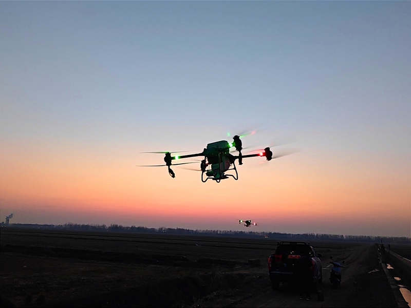3月1日,淮南农场公司使用无人机实施田间施肥。董俊霆  摄
