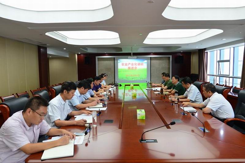 819,安徽农垦集团总经理刘超主持召开农业产业化争上行调研推进会,副总经理李家堂、总农艺师姚礼发及办公室、农水科技部负责人参加。