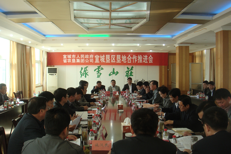 411,安徽农垦集团与宣城市人民政府举行宣城垦区垦地合作推进会。宣城市长韩军主持会议,省农垦集团总经理李卓民出席会议并作讲话。宣城市常务副市长韩永生,省农垦集团副总经理、通和地产董事长程军参加会商。